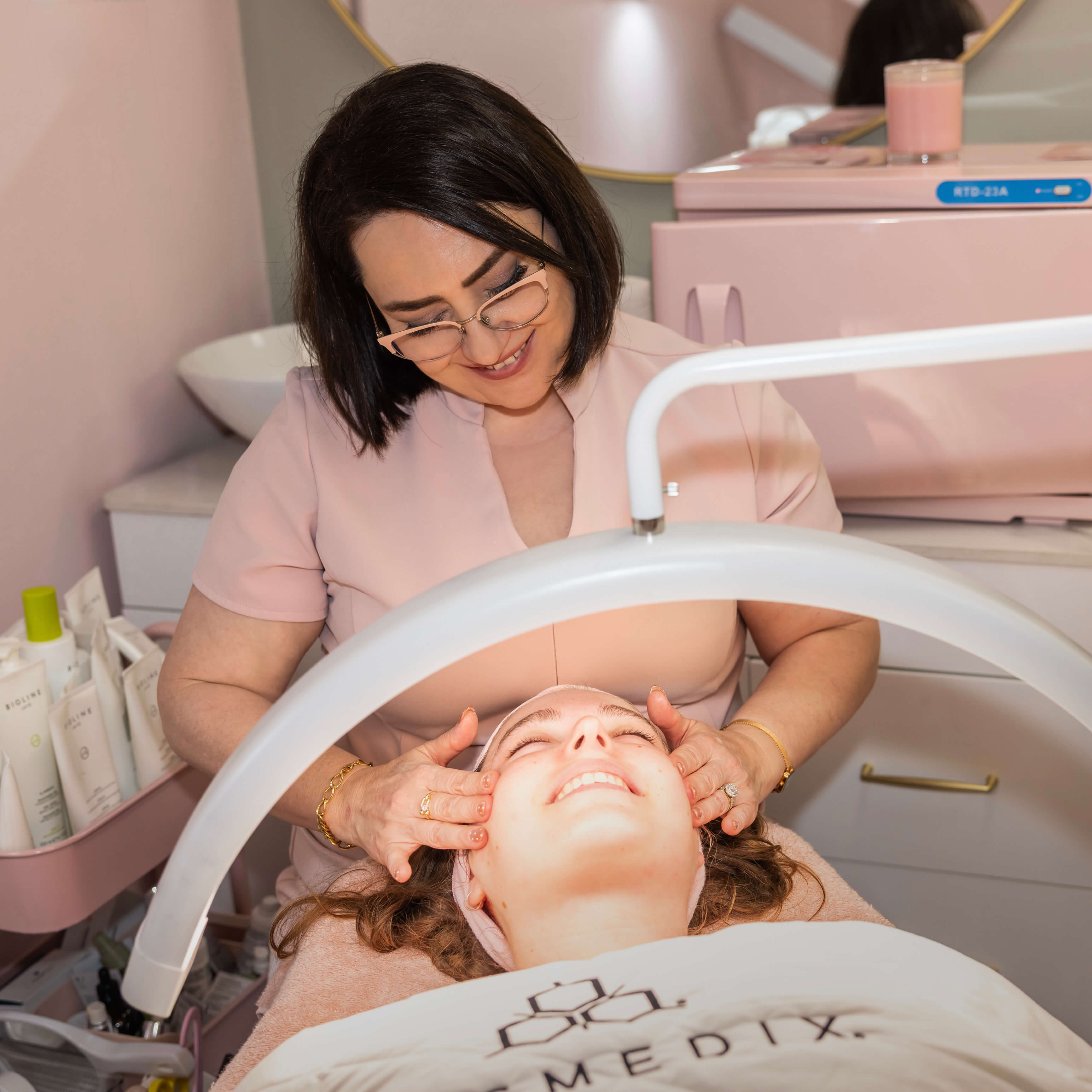 What is Hydra Glow Signature Facial? Our most loved hydration treatment, fully customized for your unique skin. This deluxe facial combines deep moisture infusion with a relaxing face and neck massage to release tension and boost circulation. We tailor every step to your skin’s specific needs, leaving you feeling deeply relaxed and your complexion looking plump, fresh, and incredibly glowing.